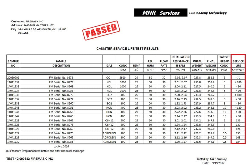 Firemask: Proven Performance in Independent Lab Tests, Maintaining Target Acceptable Concentrations for Over 60 Minutes